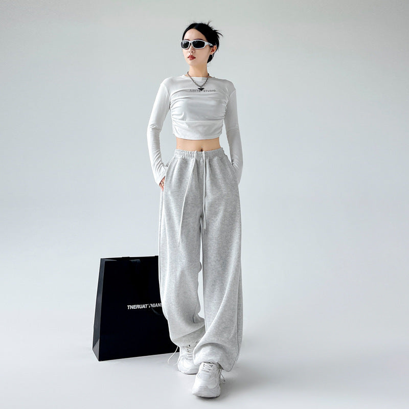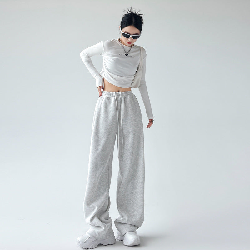 Casual Straight-leg High Waist Slimming Wide Leg Pants