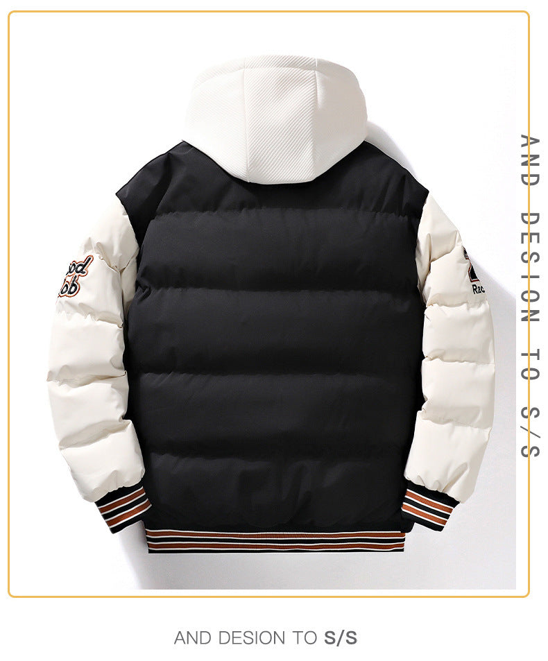 Men's Winter Coat Fake Two-piece Hooded Letter-print Bread Coat